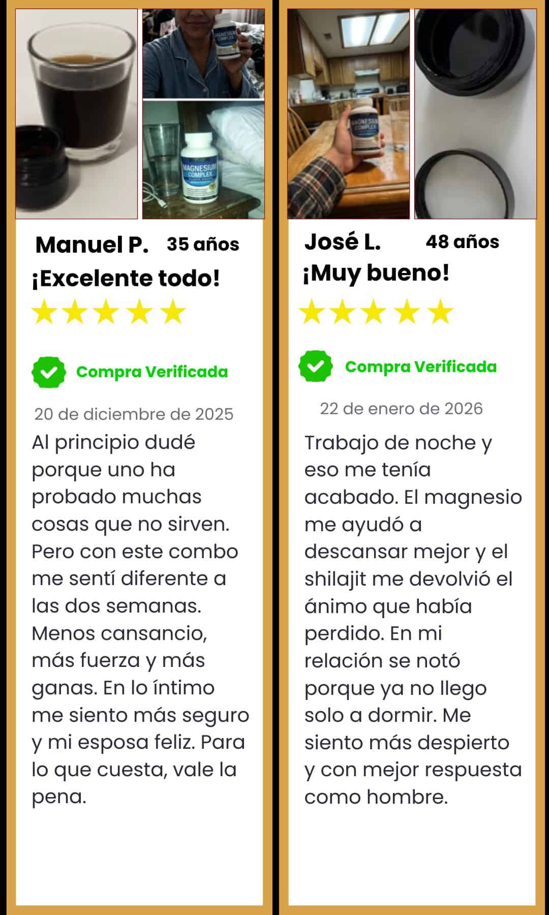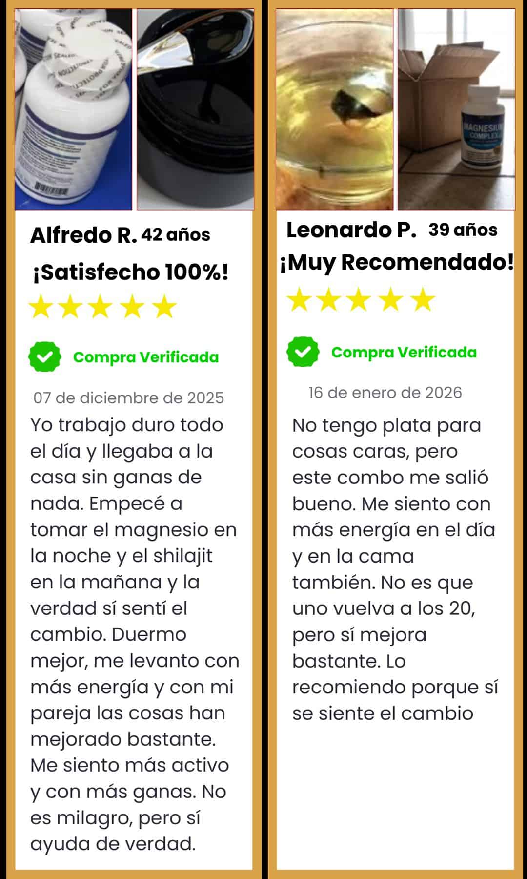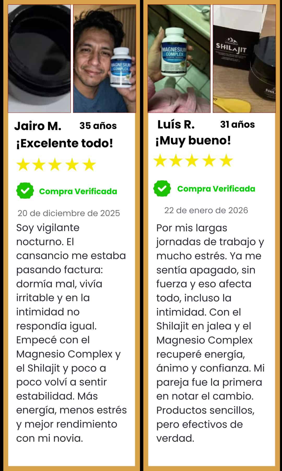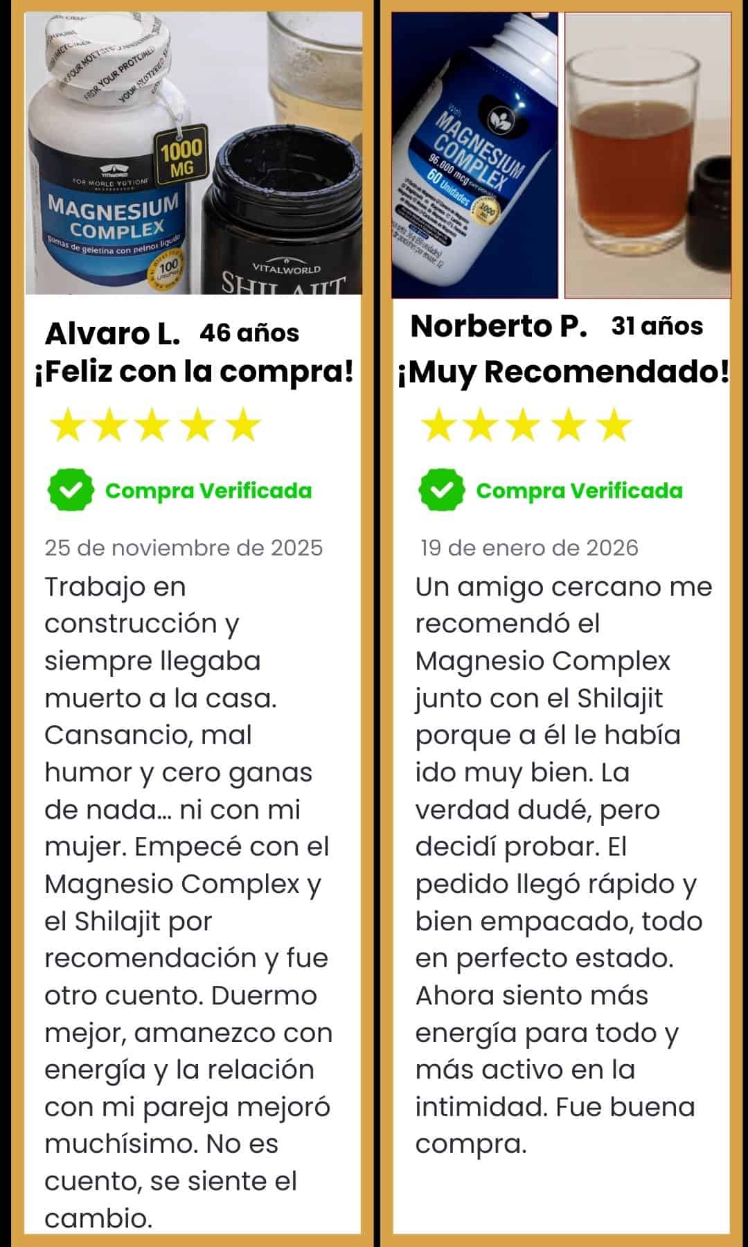 Sí. El Shilajit y el Magnesium Complex están pensados para complementarse. Uno apoya la energía y el rendimiento y el otro acompaña la recuperación y el descanso.